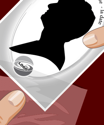 Phase 2 : Ce dernier est collé sur le support 160 gr, personnalisé à l’événement et muni d’une petite pastille collante.