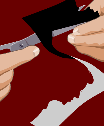 Les silhouettes ( profil des personnes ) sont découpées sur un papier spécial noir coté face et blanc coté verso.